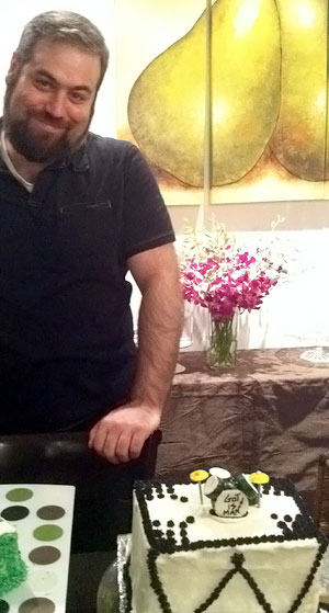 When the cake was done I thought it looked a bit plain so I made a gum paste drum set and painted it to look like Dan’s drums (I also put the fake name (Gottesman = Got Is Man) of what I think his metal band should be on the drums). I also made some decorations with black decorator’s icing.